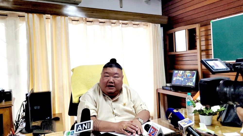 Nagaland Minister for Tourism & Higher Education, Temjen Imna Along has addresses media in Kohima on September 11. (Morung Photo)