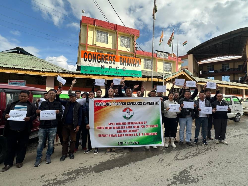 KOHIMA, DECEMBER 19 (MExN): The Nagaland Pradesh Congress Committee (NPCC) on January 19 staged a peaceful demonstration at Congress Bhavan in Kohima, expressing strong opposition to Union Home Minister Amit Shah's alleged remarks on Dr BR Ambedkar’s legacy.