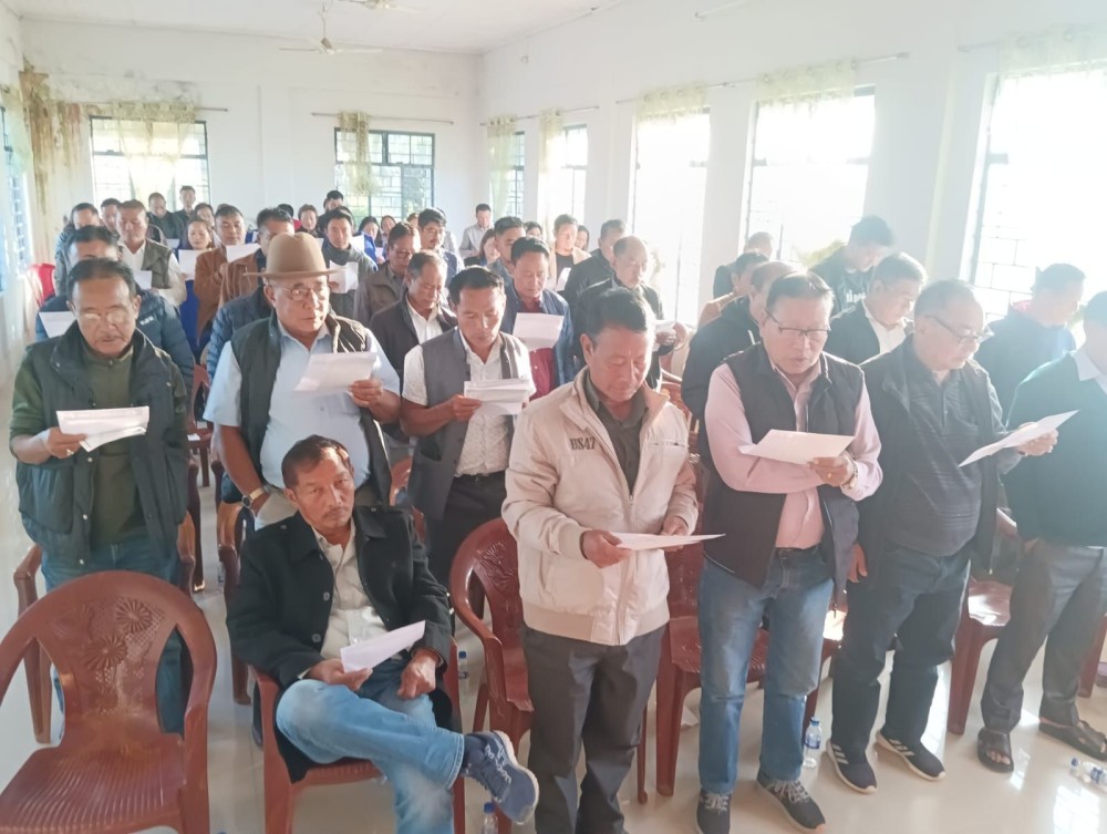 The oath-taking ceremony for the office bearers was administered by N. Bendang Jamir, Senior Vice President of the NPF Central, who also led the members in reading the pledge. Following the ceremony, a dedicatory prayer was offered by Moanukshi, Associate Pastor (Youth), Yimyu Baptist Church. The programme concluded with a vote of thanks delivered by Tangit Imsong, Working President of the NPF Mokokchung Division. The meeting was attended by central leaders from Mokokchung, senior party leaders, and members of the NPF.