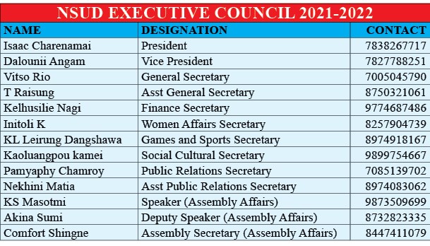 It further stated that the NSUD’s admission helpdesk would be available at Nagaland House and Manipur Bhawan in New Delhi from July 26 onwards to assist in filling up forms and other admission procedures. For further information and queries, parents/candidates have been asked to contact NSUD officials. (See table)