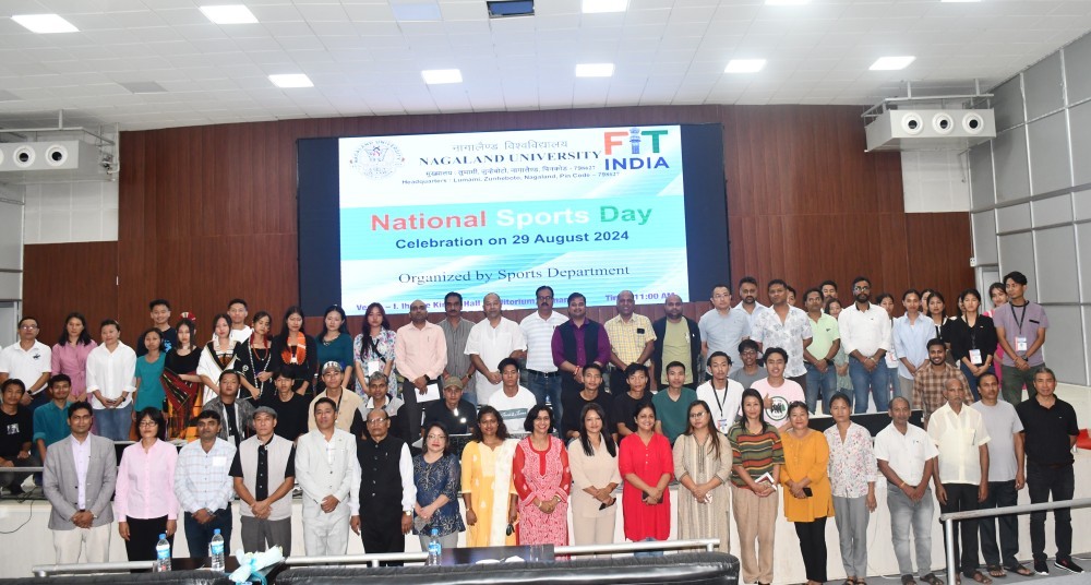 Lumami, August 29 (MExN): Nagaland University celebrated National Sports Day with a special felicitation ceremony for Vizovor Liezietsu, a distinguished figure in Indian football. The event, held at I. Ihoshe Kinimi Hall, was graced by Prof. M.K. Sinha, Vice Chancellor In-Charge, as the chief guest.