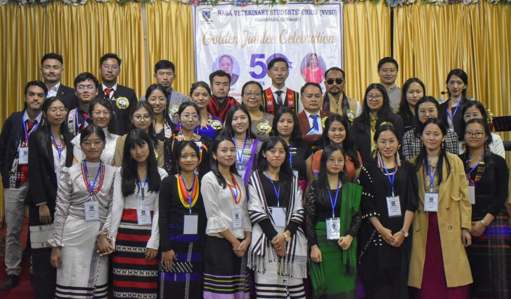 DIMAPUR, JANUARY 14 (MExN): The Naga Veterinary Students' Union (NVSU) Khanapara, Guwahati of College of Veterinary Science celebrated their Golden Jubilee on January 13 at LM Auditorium, Pan Bazar. The program was graced by Dr Zasekuolie Chüsu, IAS, Secretary, Transport Department, Govt of Nagaland & Director, Census Operation, Nagaland, Govt of India as Chief Guest and Prof (Dr) Yanbeni Humtsoe, Vice Principal and HOD Department of PTSR(Obstetrics and Gynaecology) Government Ayurvedic College, Guwahati was the Guest of Honour.