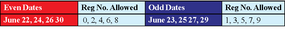 As per an order issued by Sr. Superintendent of Police, Kohima on June 19, vehicles registration ending with odd numbers - 1, 3, 5, 7, 9, will be allowed on dates ending with odd numbers while those with even numbers – 0, 2, 4, 6, 8, are permitted to ply on even dated days.