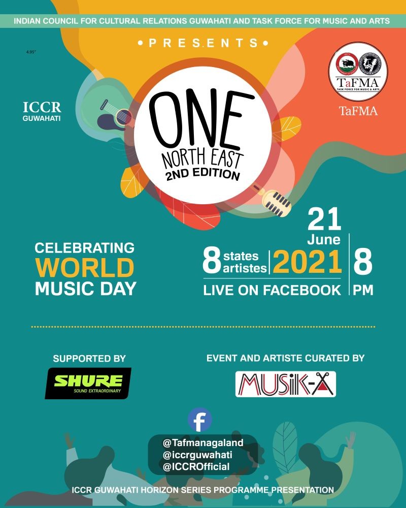 On the occasion of World Music Day (June 21), Task Force for Music and Arts (TaFMA), Nagaland in association with Indian Council for Cultural Relations (ICCR), Guwahati will be hosting the 2nd edition of ‘One North East’, a one-of-its kind virtual concert with eight artistes from across Northeast of India after a successful show last year.