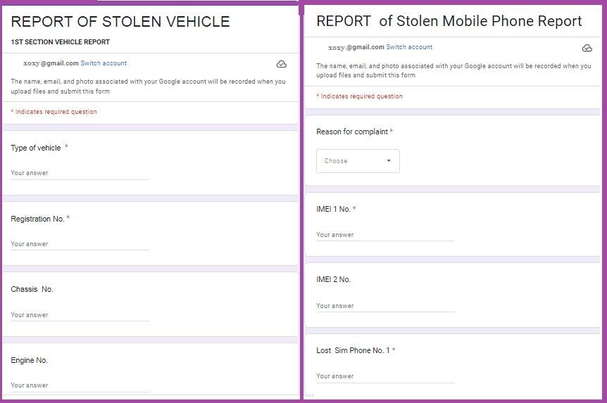 Vehicle Theft (https://forms.gle/VmbN5FcT3tgJiKok7)