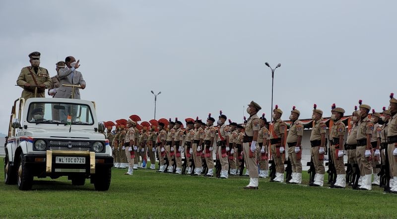 Chief Minister Neiphiu Rio inspects parade contingents during 75th Independence Day celebration in Kohima on August 15. (Morung Photo)