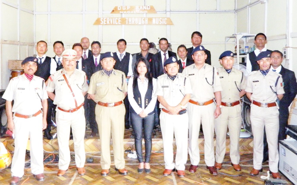 DGP Besesayo Kezo, IPS and others pose for camera with DGP Band during a maiden visit to 4th NAP Thizama on April 19. (Morung Photo)
