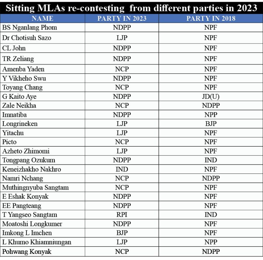In a clear sign of how ‘party hopping’ is a norm, rather than an exception in Nagaland, over 47% members of the 13th Nagaland Legislative Assembly re-contesting as candidates from other parties in the ensuing assembly elections on February 27.