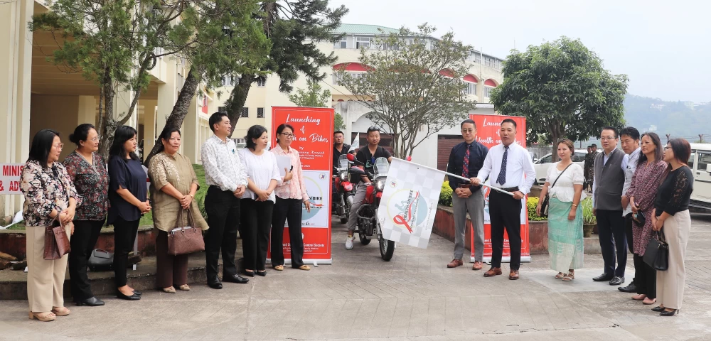 Minister Health and Family Welfare, P Paiwang Konyak launching the ‘Health on bikes’ at the State Council on AIDS held in Kohima on June 6.