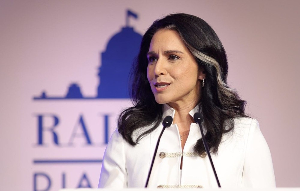 New Delhi: U.S. Director of National Intelligence Tulsi Gabbard speaks at the Raisina Dialogue 2025, New Delhi on Tuesday, March 18, 2025. (IANS)