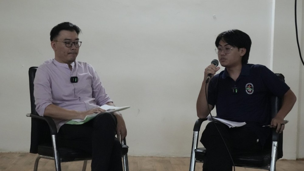 Imlisunep (left) with Akumtemsu during the lecture on “Neoliberalism and the Making of the Self: From Chile to the Burnout Society” at Patkai Christian College on April 15.
