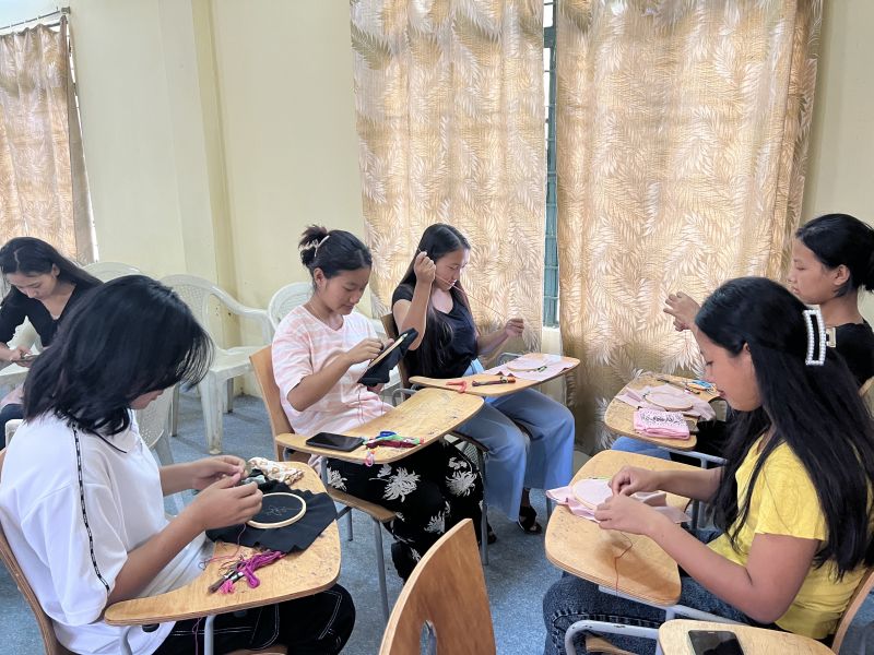 The workshop for the day was conducted on ‘Embroidery’ and ‘Dao making’. The students were given first hand training on the basics of stitching and dao making.