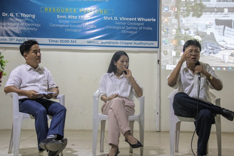 In the interaction session moderated by Dr Ajano Khalo, the speakers answered questions on awareness that are given to the locals regarding landslide in Noklak; most Arsenic contaminated zone in Nagaland and what is its source; and what will be the solution to alarming landslide in Noklak Town due to Neotectonic activity etc.