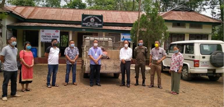 The Peren District Legal Services Authority (PDLSA) contributed essential items to quarantine centres of Peren and Jalukie sub-division on May 23 at COVID-19 Control Room, ADC Office Jalukie. The contributed items comprising of Dal 1 and half bag (45 kgs), potato 3 bags, egg 2 dozens, soap 2 dozens, toothpaste 25 nos. and 5 litres of mustard oil were handed over to CMO Peren in the presence of other Medical staff and SDPO Peren by Retainer Lawyer PDLSA, Asungbe. Legal pamphlets in different acts and dialects were also handed over to Medical department for quarantines by the PDLSA. (DIPR Photo)