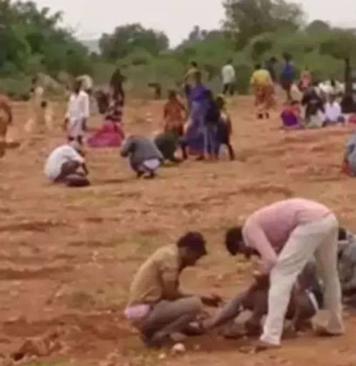 People hunt for precious stones in the agricultural fields between Guntakal and Pathikonda areas on the border between Anantapur and Kurnool districts.
