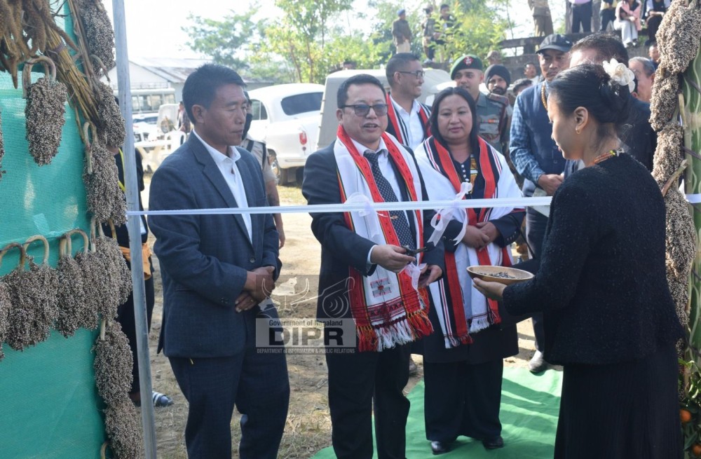 Som Kamei, IPoS, Planning Adviser, NECS, Ministry of DoNER inaugurating the exhibition stalls at the Unity Mini Hornbill Festival 2025 at Peren on November 4. (DIPR Photo)
