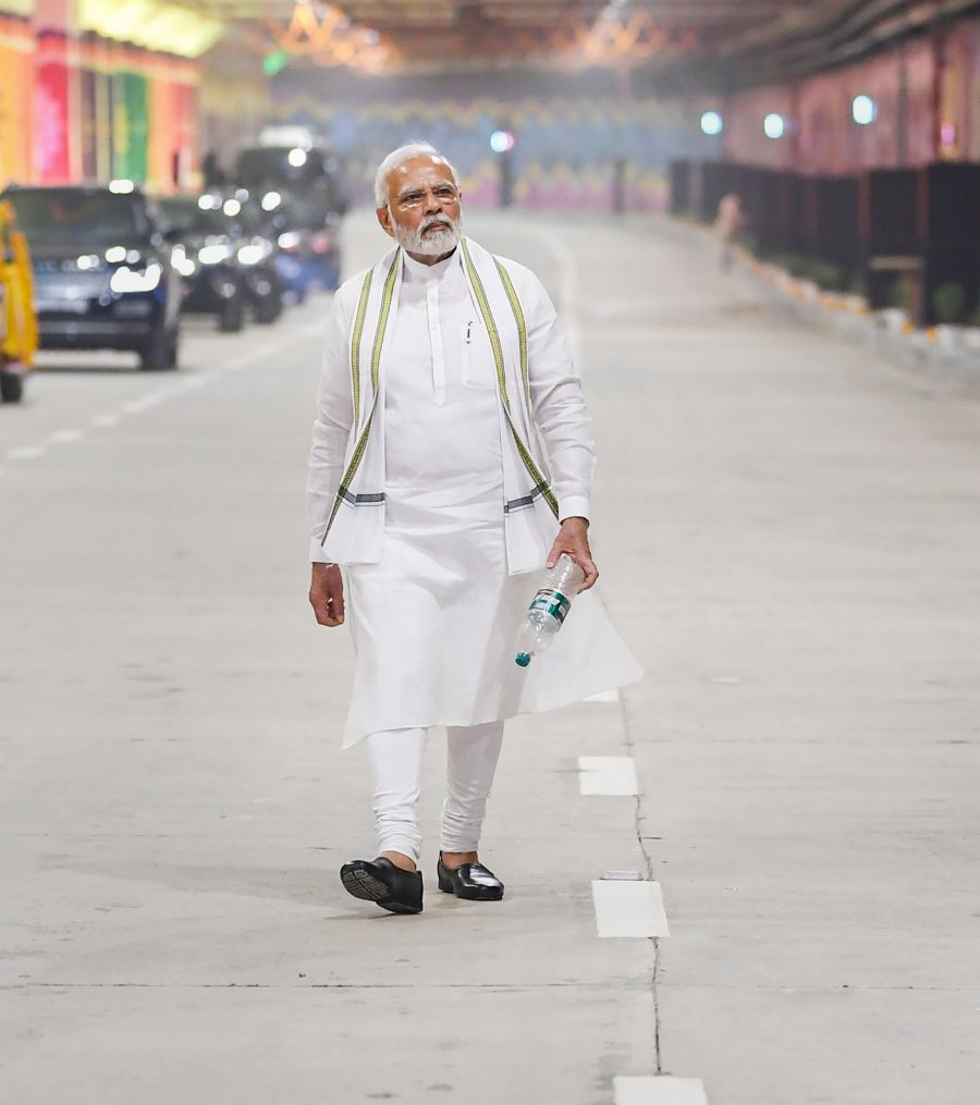 **EDS: HANDOUT PHOTO MADE AVAILABLE FROM PMO ON SUNDAY, JUNE 19, 2022** New Delhi: Prime Minister Narendra Modi inspects the newly inaugurated Pragati Maidan Integrated Transit Corridor, in New Delhi, Sunday, June 19, 2022. (PTI Photo)