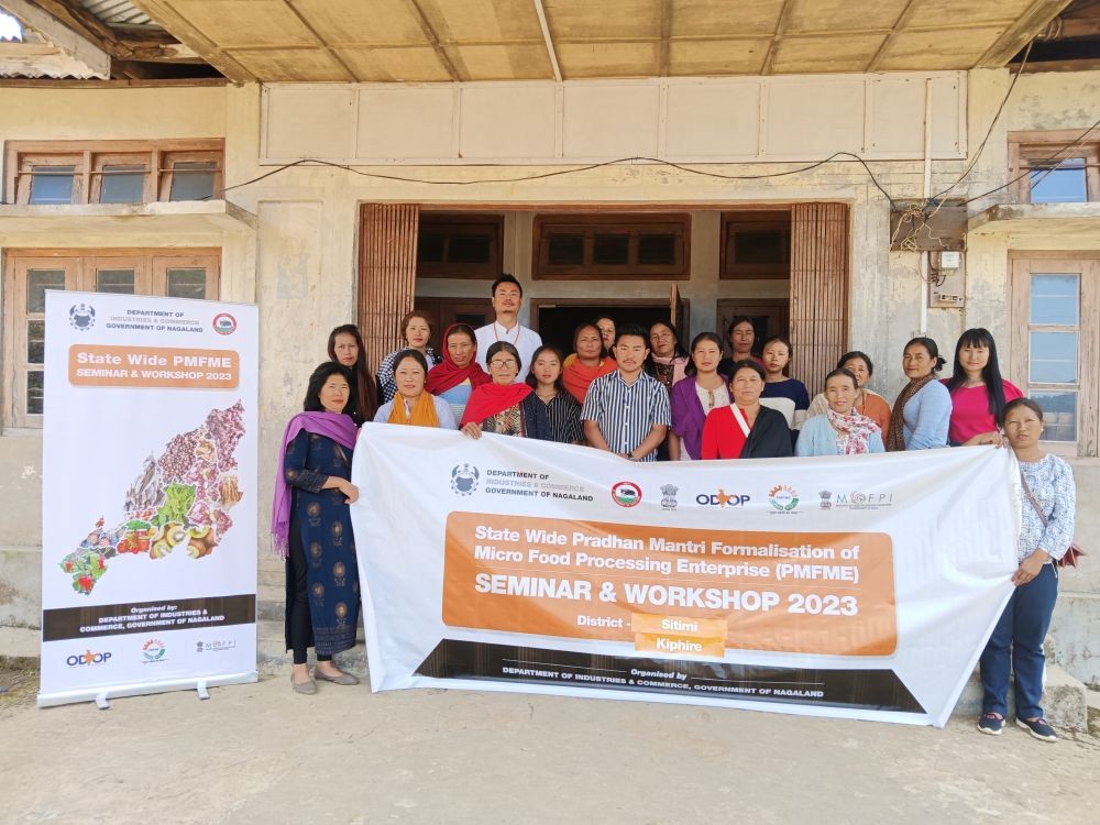 Kohima, May 9 (MExN): Department of Industries and Commerce, Nagaland as part of their State-Wide Sensitization Drive (Phase-I), conducted seminar & workshop on Pradhan Mantri Formalization of Micro Food Processing Enterprises (PMFME) scheme on May 9. The areas covered included Aghunato and Pughoboto, Zunheboto District; Sitimi- Kiphire District; Mangkolemba- Mokokchung District; Mon Town and Wakching- Mon District; Tseminyu District and Noklak District. With the support of RD-NSRLM, NULM-SUDA, NEIDA and DICs, various prospective individual entrepreneurs and groups like SHGs, FPOs, FPCs and Co-operative Societies from the concerned District took part in the programme. A press note stated here that the Department will cover different blocks of various districts during the phase-I of the sensitization drive.