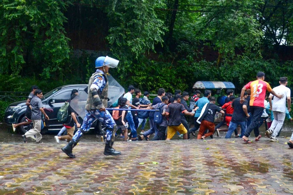 Kolkata: RAF personnel baton-charge supporters of East Bengal FC and Mohun Bagan Super Giant during a protest near Salt Lake Stadium against the rape and murder of a young medic at RG Kar Medical College in Kolkata on Sunday, August 18, 2024. (Photo: IANS/Kuntal Chakrabarty)