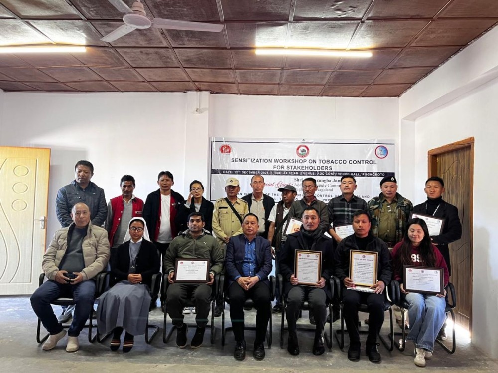 Pughoboto, December 13 (MExN): The State Tobacco Control Cell, Nagaland, under the National Tobacco Control Programme (NTCP), conducted a Sensitization Workshop on Tobacco Control for stakeholders at Pughoboto Sub-Division on December 12 at the Conference Hall of the ADC Office, Pughoboto. The workshop was aimed to strengthen local-level awareness, enhance enforcement of tobacco control laws, and promote tobacco-free institutions and offices.