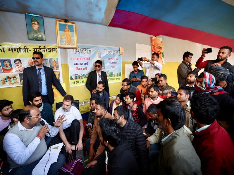 Patna, January 18 (IANS): Congress MP Rahul Gandhi on Saturday during his visit to Patna met the protesting BPSC exam candidates -- a development that is set to gain a significant political attention.