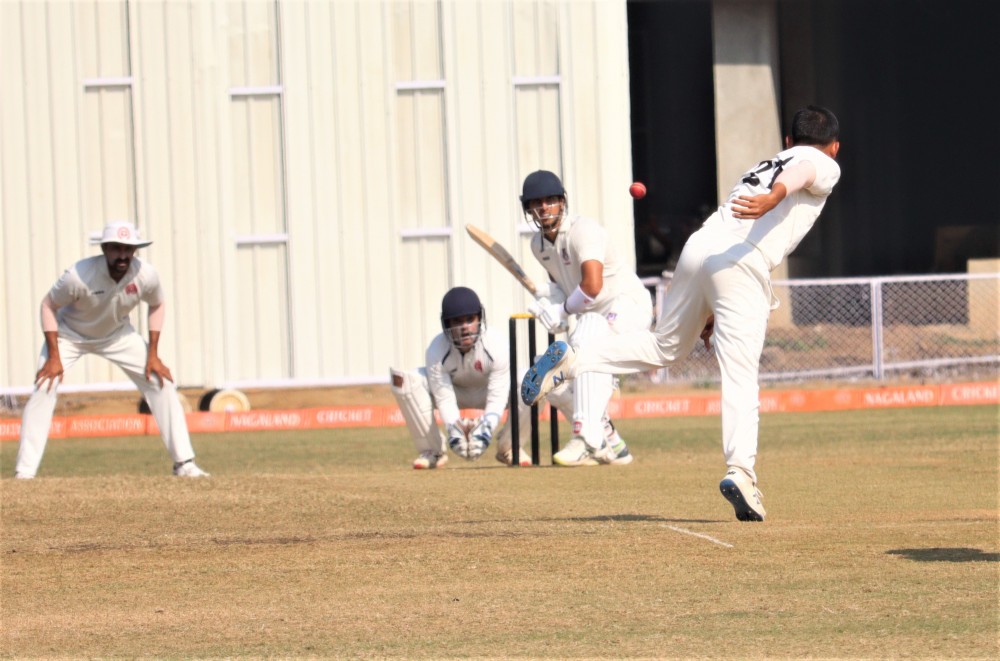 Chümoukedima, December 20 (MExN): Uttar Pradesh was comfortably set at 400 for 3 at stumps on day 1 of its Ranji Trophy Elite Group-A game against Nagaland at the Nagaland Cricket Stadium, Sovima. Put in to bat first, UP dug in for the day with a 247 runs opening partnership. According to an NCA release, openers— Madhav Kaushik and Dhruv Chand Jurel (Wk) scored tons with Jurel remaining unbeaten 6 runs short of a double ton at the close of play.