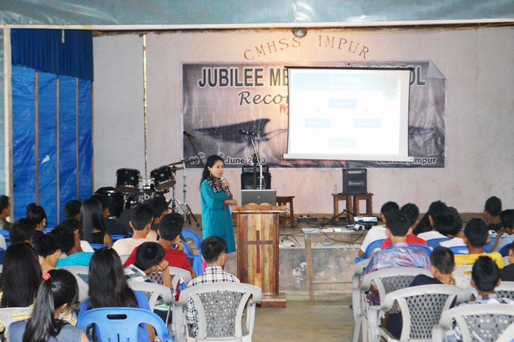 Youth Net Training Consultant, Talichila speaking about personal management during the three day summer camp of Jubilee Memorial School at Impur on June 19. (Morung Photo)