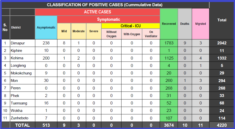 Dimapur, September 7 (MExN): A total of 42 new COVID-19 cases and 164 new recoveries were reported in Nagaland on Monday.