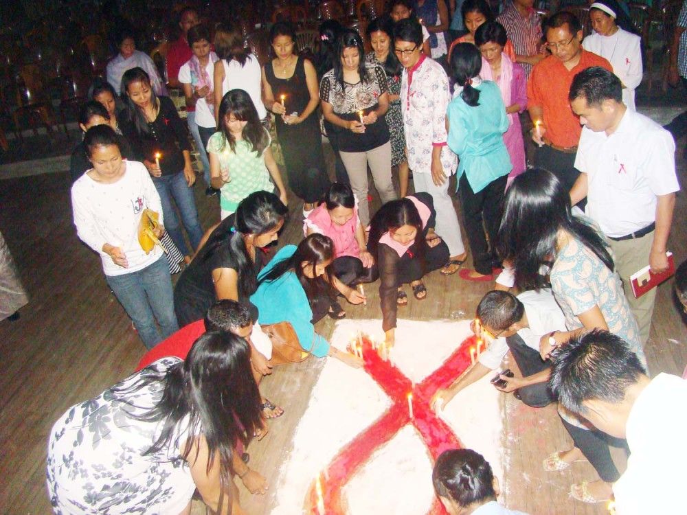 People light candles marking the International AIDS Candlelight Memorial Day 2013 at IMC Hall Dimapur on Sunday. (Morung Photo)