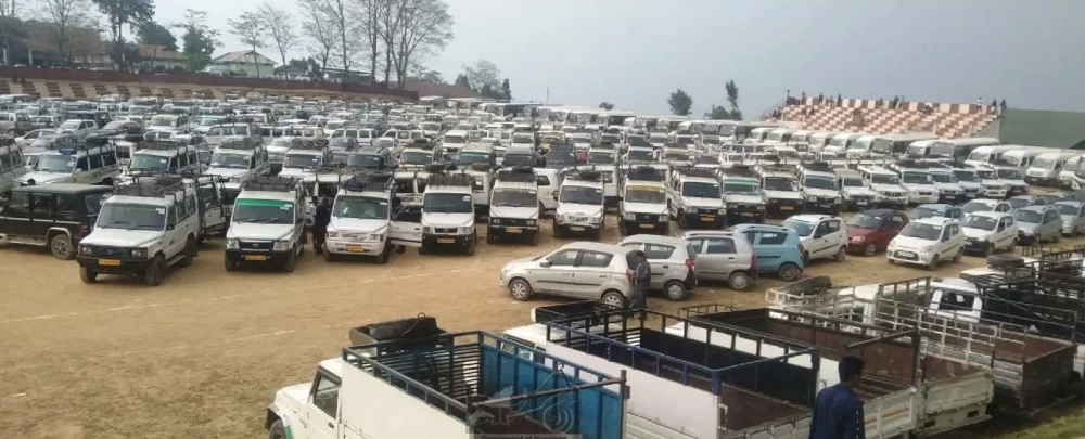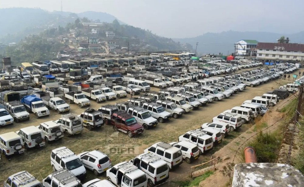 Requisitioned vehicles stationed at Peren town which were dispatched across Peren district for the conduct of Lok Sabha election on April 17. The poll was conducted in the state on April 19. (DIPR Photo)
