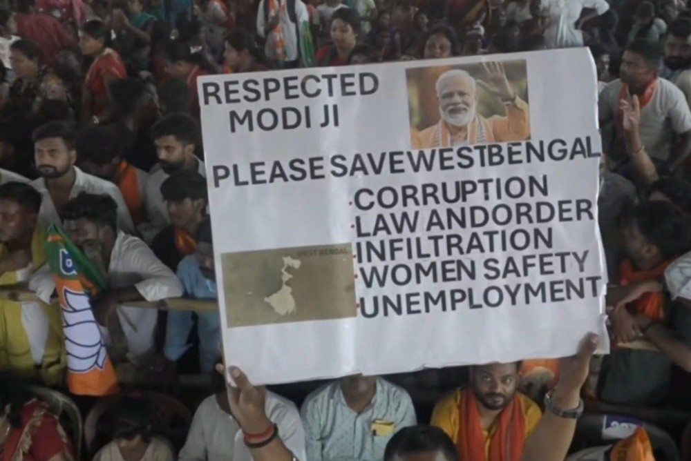 Kolkata, April 9 (IANS) A striking visual emerged during Prime Minister Narendra Modi's public rally in Asansol on Thursday, as a person in the crowd held up a poster appealing directly to the Prime Minister with the message, "Respected Modi ji, please save West Bengal."