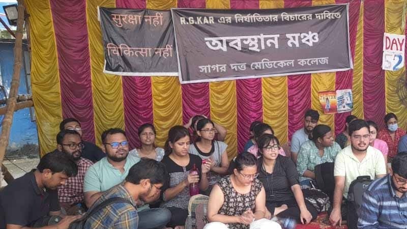 On Saturday, the protesting junior doctors at Sagore Dutta Hospital forwarded a memorandum containing their ten-point demands. They said their cease-work would continue unless their demands were fulfilled.