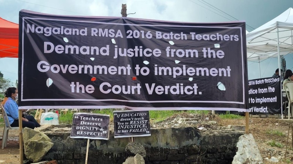The Nagaland Rashtriya Madhyamik Shiksha Abhiyan (RMSA) 2016 teachers’ indefinite sit-in protest outside the Directorate of School Education (DoSE) entered its second day on September 9.