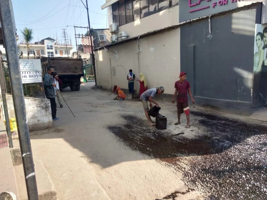 Workers repaired a road at Ao Khel, Notun Basti, Dimapur, on December 1. The road, which serves as the main entrance to the said locality, under DMC Ward 21, was in a deplorable condition. Machinery was deployed by the EE (Roads & Bridges) Dimapur Division, Er Inahoto Sema.