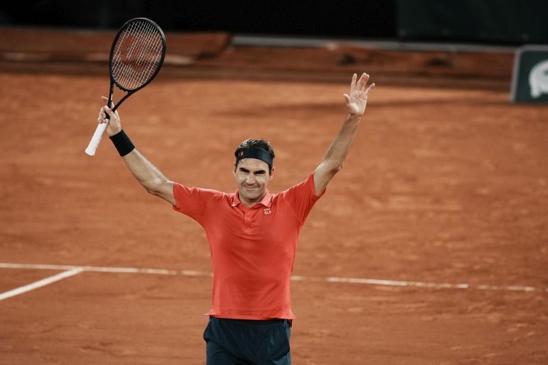 Switzerland's Roger Federer celebrates after defeating Germany's Dominik Koepfer in their third round match on day 7, of the French Open tennis tournament at Roland Garros in Paris, France, Saturday, June 5, 2021. (AP/PTI Photo)