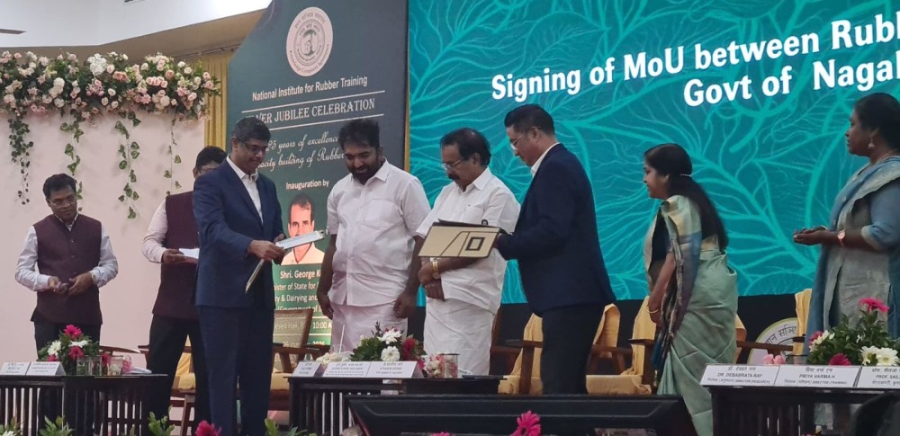 This was signed on the occasion of NIRT silver Jubilee celebration at Rubber Research Institute (RRI) Kottayam, Kerala, in the presence of George Kurian, Minister of State for Minority Affairs, Fisheries, Animal Husbandry & Dairying, Chandy Oommen, MLA, M Vasanthagesan IRS Executive Director, RBI, Dr Siju T Rubber Production Commissioner RPC, Priya Varma, Director, NIRT, Former Directors NIRT and Senior Officials RBI.
