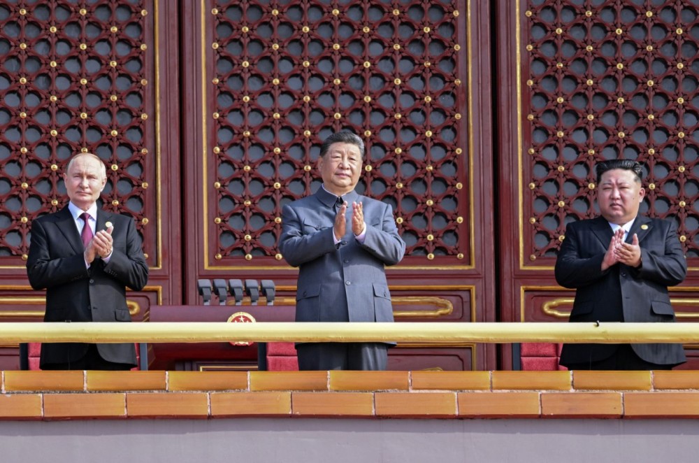 Beijing: North Korean leader Kim Jong-un (R), alongside Chinese President Xi Jinping (2nd from R) and Russian President Vladimir Putin (L), attends a military parade marking the 80th anniversary of Japan's surrender and the end of World War II at Tiananmen Square in Beijing on Sept. 3, 2025, in this photo released by the North's official Korean Central News Agency the next day. (Photo: IANS/Yonhap)