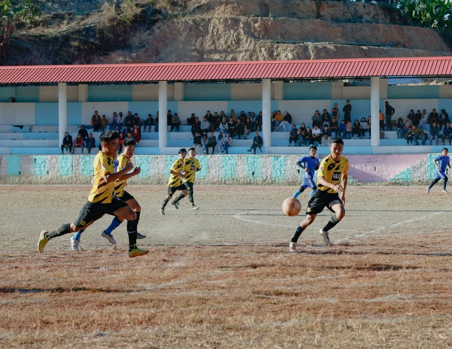 Players at the ongoing 65th Sports Meet 2023 of Rüsoma Village Youth & Sports Association at Rüsoma village in Kohima district.