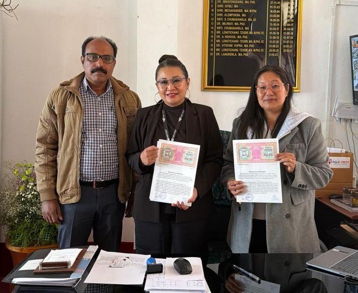The MoU was formally executed by Sao Chang College, Principal, Dr Lanurenla and Chief Executive Officer of Eagle Crest Training Academy & Consultancy, Temjenkala Aier at the Principal’s office chamber, in the presence of the college Vice Principal, Dr T Lal Veda Chandra Kumar.