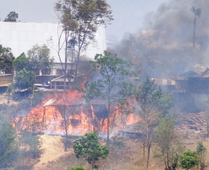 The fire scene, where a saw mill was burnt in Chizami on April 13. (Morung Photo)