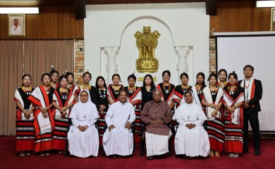 Kohima, April 27 (MExN): Nagaland Governor La Ganesan on Sunday felicitated students from St. Xavier College, Jalukie, who had participated in the Cultural Parade during the Republic Day celebrations at New Del