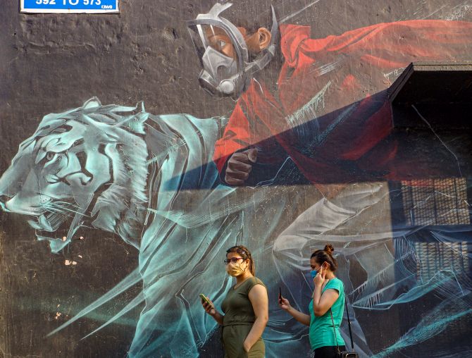 A view shows an apartment block, which is decorated with a mural dedicated to medical specialists involved in the fight against coronavirus, in Odintsovo outside Moscow, Russia. REUTERS/Evgenia Novozhenina
