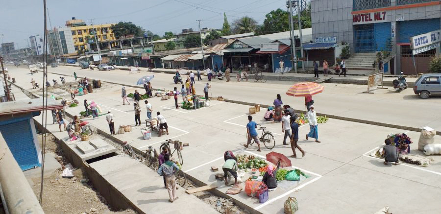 Designated market place with social distancing norms initiated by Chümoukedima Covid-19 Task Force under aegis of EAC office Chümoukedima.