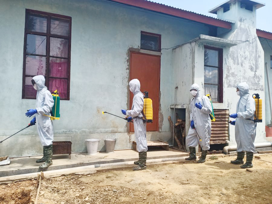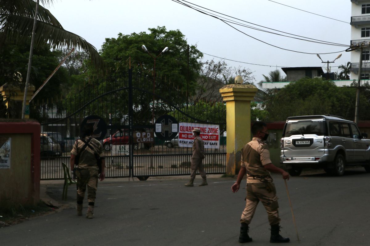 Police manning the gates to the Zion Hospital and Research Centre Dimapur on April13.(Morung Photo)