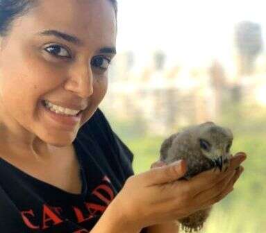 Mumbai, April 5 (IANS) During the coronavirus lockdown, a special guest paid a visit to actress Swara Bhasker. And that special guest is none other than a wild baby black kite bird.