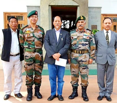 Lt General Rana Pratap Kalita with Neiphiu Rio and other officials in Dimapur on March 6. (Photo Courtesy: PIB Defence)