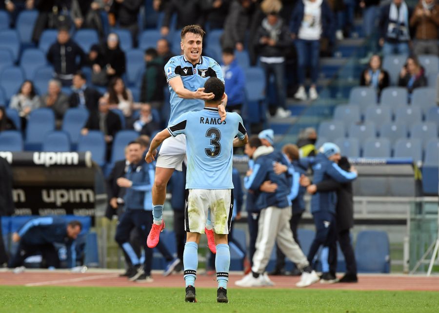 Lazio's Patric and Luiz Felipe celebrate after the match REUTERS/Alberto Lingria