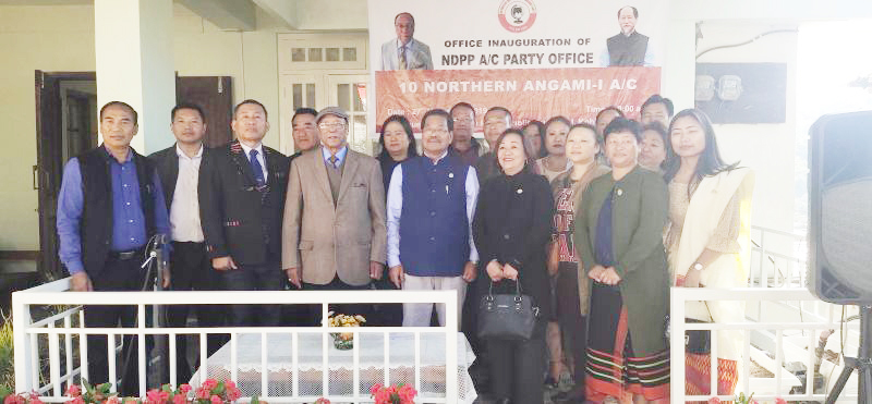 Chingwang Konyak and others during the inauguration of NDPP 10th Northern Angami-1 A/C office in Kohima on November 27. (Morung Photo)