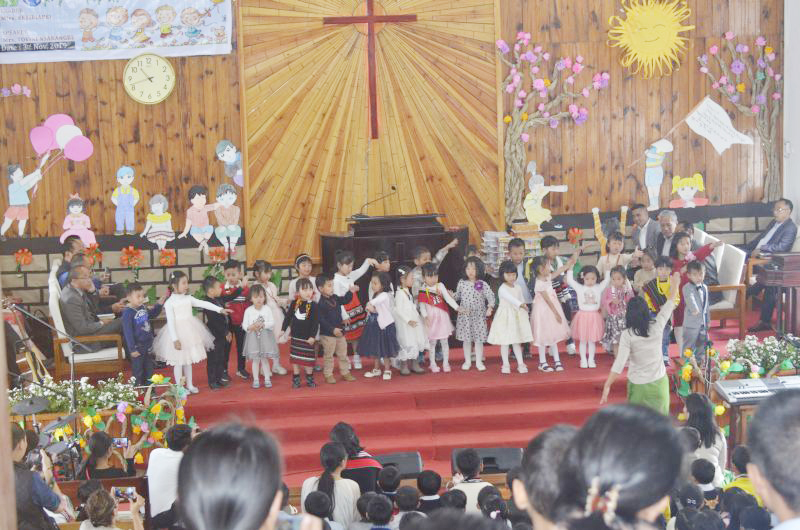 Primary class of Zeme Baptist Church Kohima presenting a song on World Sunday School Day on November 3.
