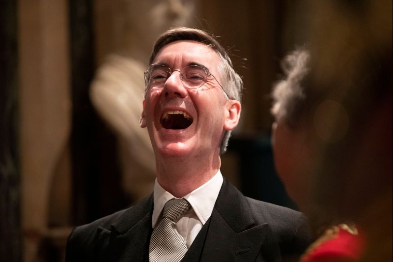 Britain's Leader of the House of Commons Jacob Rees-Mogg laughs whilst talking with someone at the State Opening of Parliament ceremony in London, Britain on October 14, 2019. (REUTERS Photo)